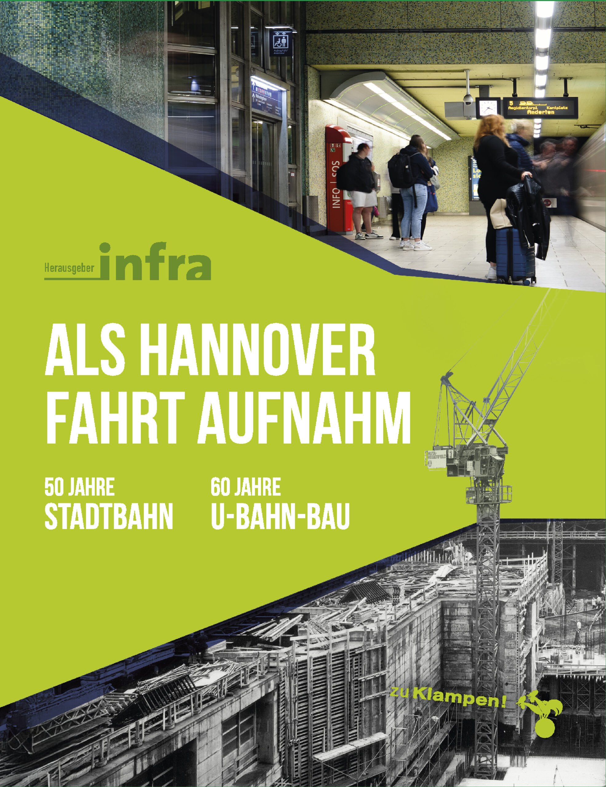 Die Infra Hannover hat ein Buch mit dem Titel „Als Hannover Fahrt aufnahm” im zu Klampen!-Verlag herausgebracht. Der Untertitel „50 Jahre Stadtbahn – 60 Jahre U-Bahn-Bau” verrät die beiden Jubiläen, die im Herbst 2025 zu feiern waren. Auf 176 Seiten wird das bahnbrechende Vorhaben vorgestellt, welches das Gesicht der Stadt für immer veränderte. Die Autoren schildern nicht nur die Komplexität der Aufgabe, sondern auch die zahlreichen Herausforderungen bei der Durchführung. Anekdoten von Zeitzeugen machen jene Phase der Stadtgeschichte lebendig. Diese Chronik der Geschichte des Nahverkehrs in Hannover erscheint am 17.11.2025 und zeigt auch einen Ausblick auf die Zukunft der Stadtbahn.