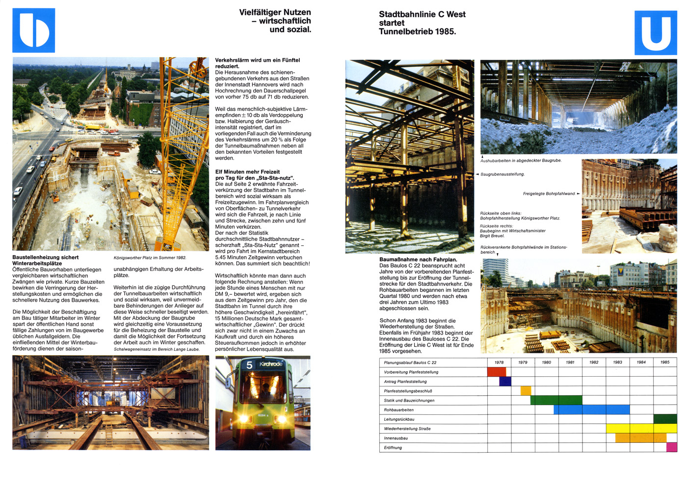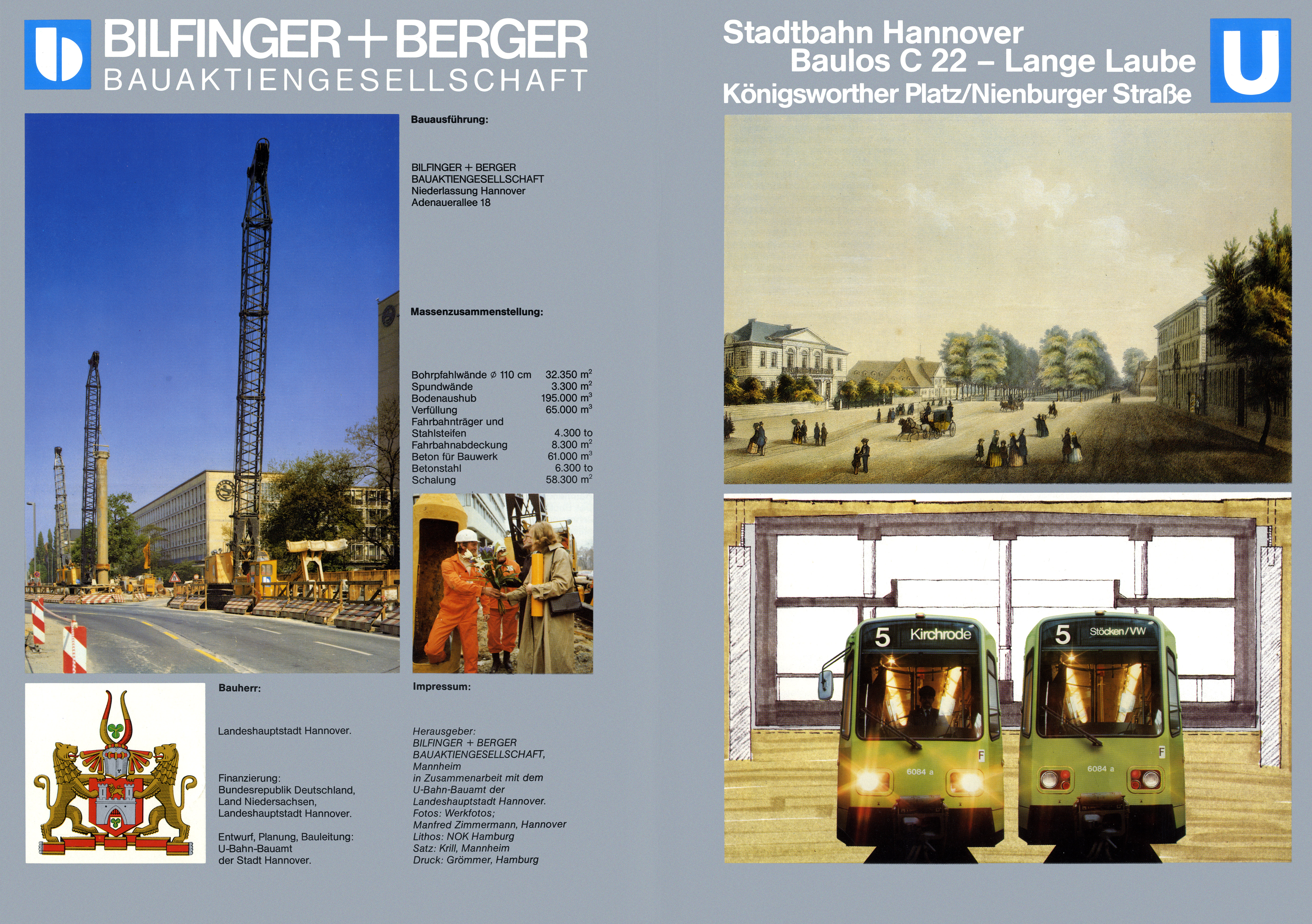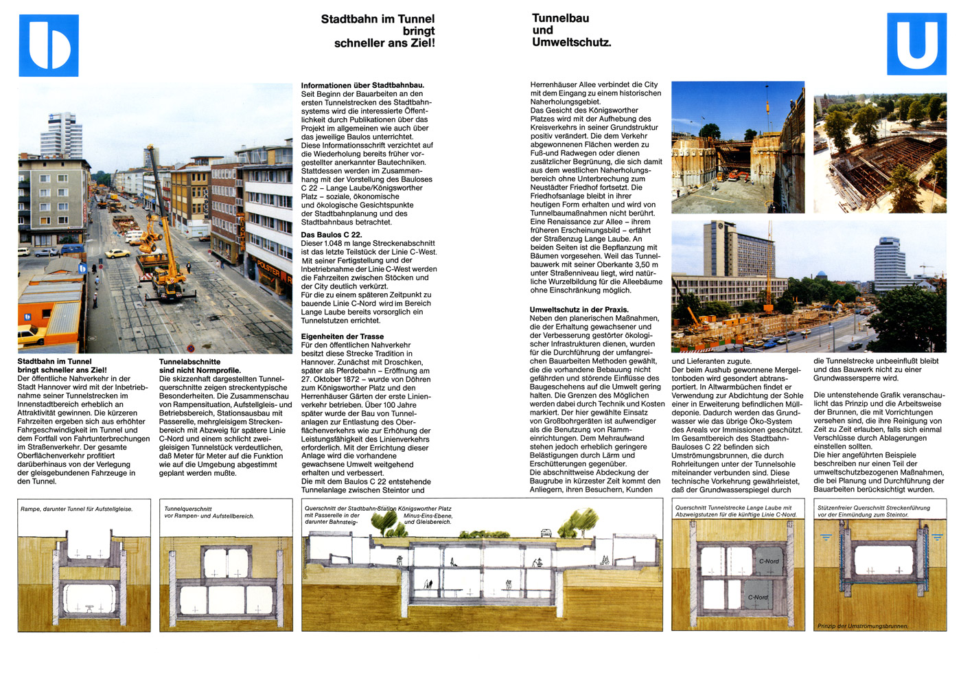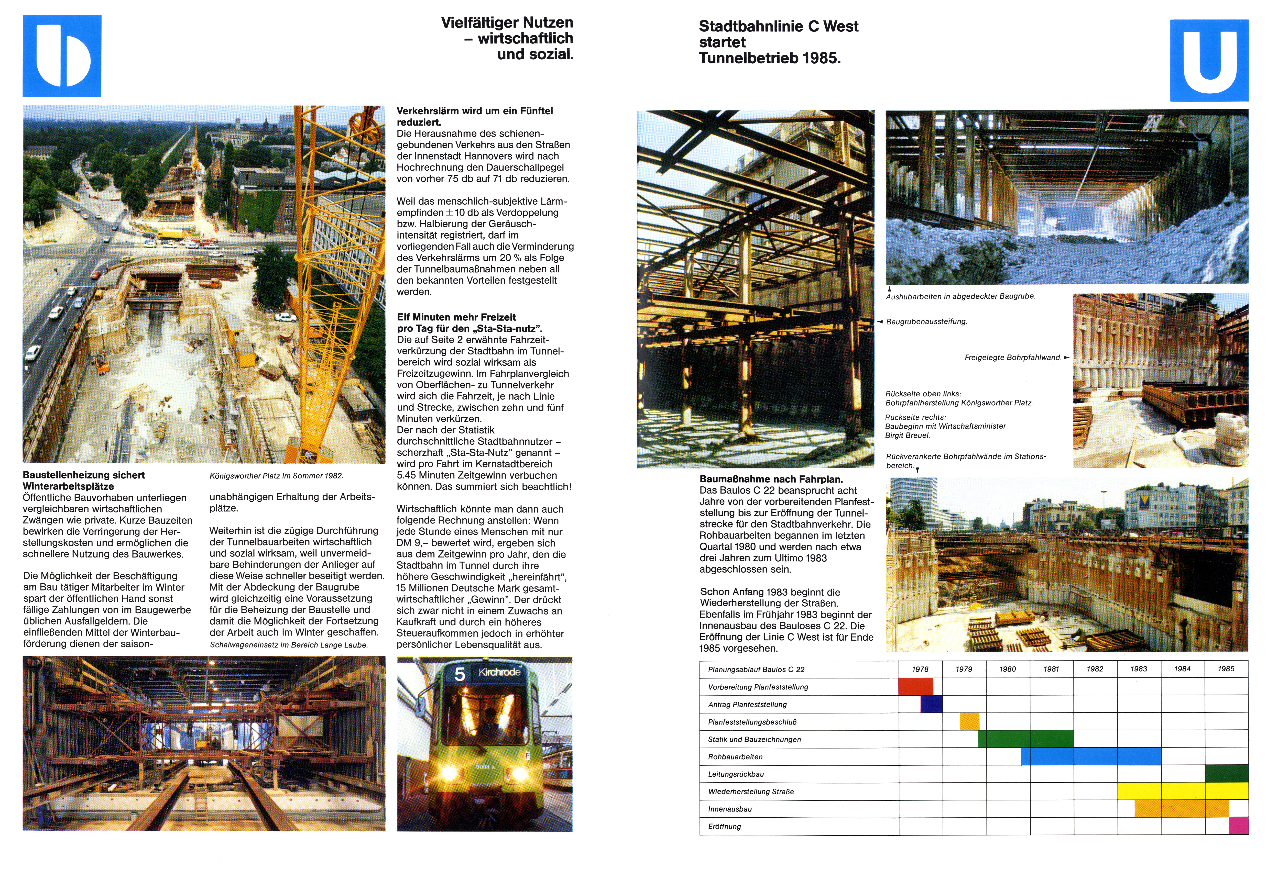 In dieser Infobroschüre aus dem Jahr 1983 wird das Baulos C 22 entlang der Langen Laube mit der Station Königsworther Platz detailliert vorgestellt, inklusive Bauzeitenplan und Einblicken in die Baustelle.